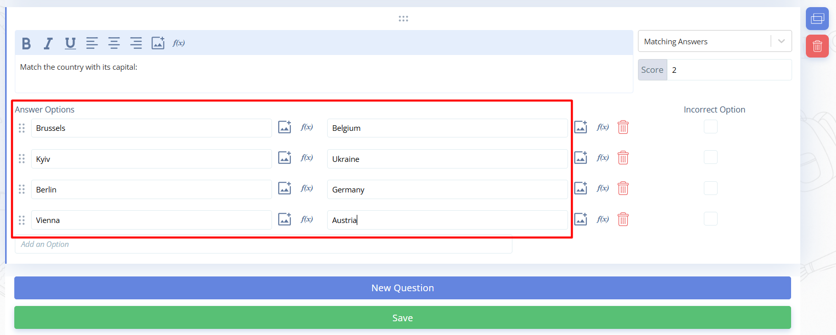 Fig. 2. Creating matching questions