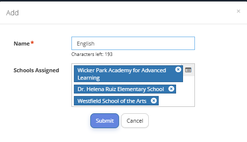 - Schools Assigned: schools which will offer the programs according to this category