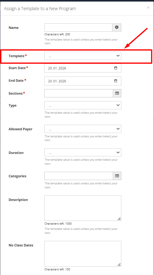 9. After the template is set up, Administrator can use it while adding new programs offered by the school.