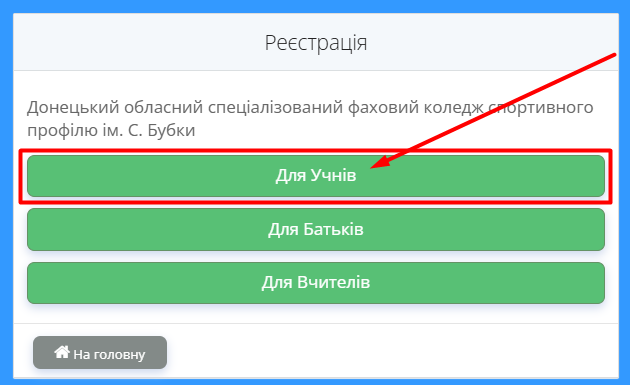 - Натисніть на кнопку "Для Учнів".