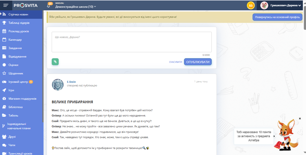 Після входу в обліковий запис учня натисніть кнопку Повернутись на основний профіль у верхній частині екрана.