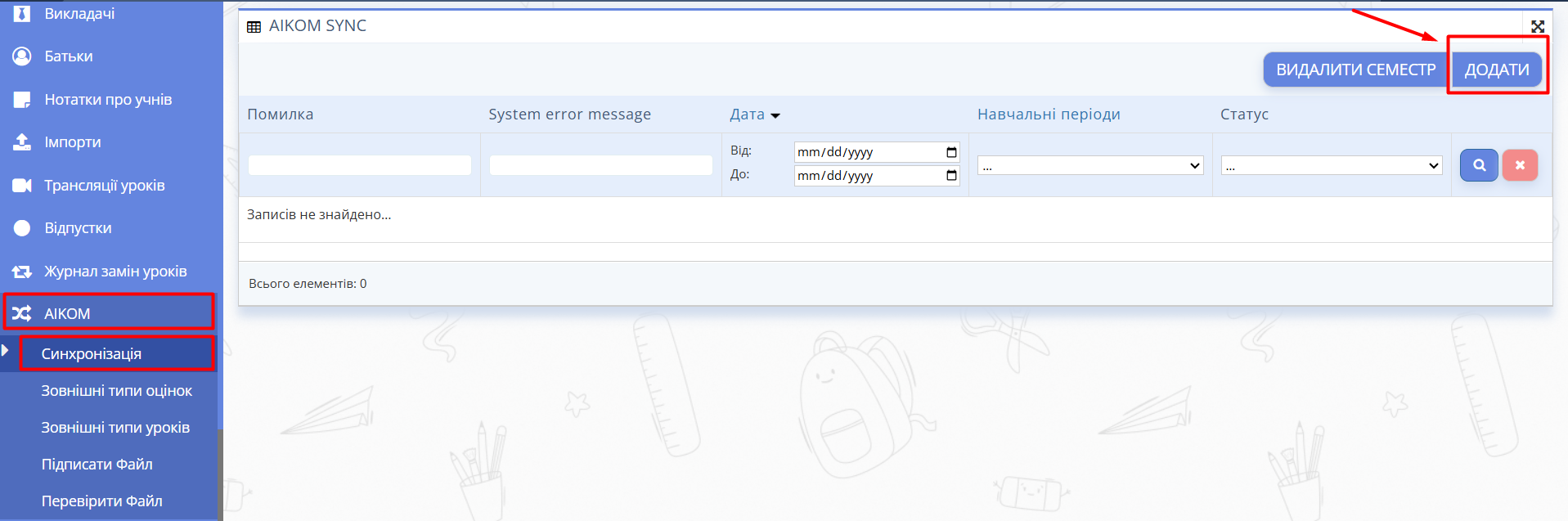 Рис. 6. Фільтр навчальних періодів для синхронізації з AIKOM* - Натисніть "Зберегти".