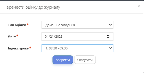3. Натиснути кнопку вище ліворуч "Перенести оцінку до журналу".