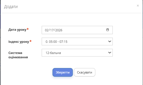 - Натисніть кнопку "Додати урок" на сторінці "Журнал" відповідного предмету, щоб створити нову колонку з датою уроку.