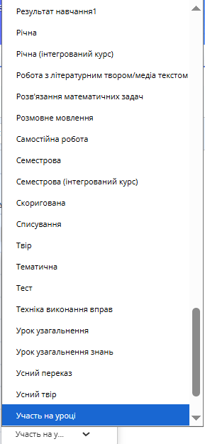 - у полі "Тип оцінки" натисніть на «Участь на уроці».