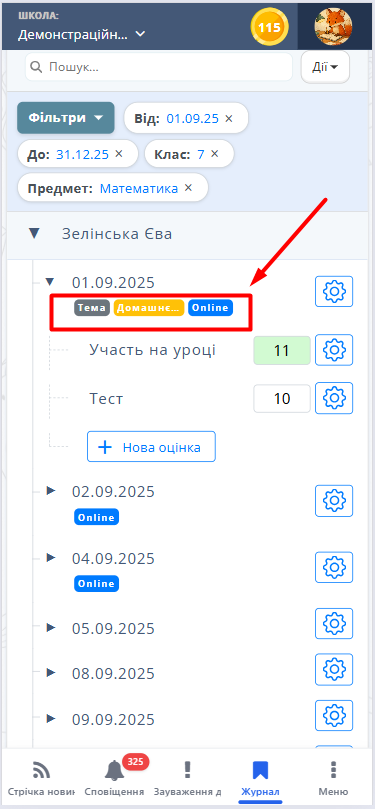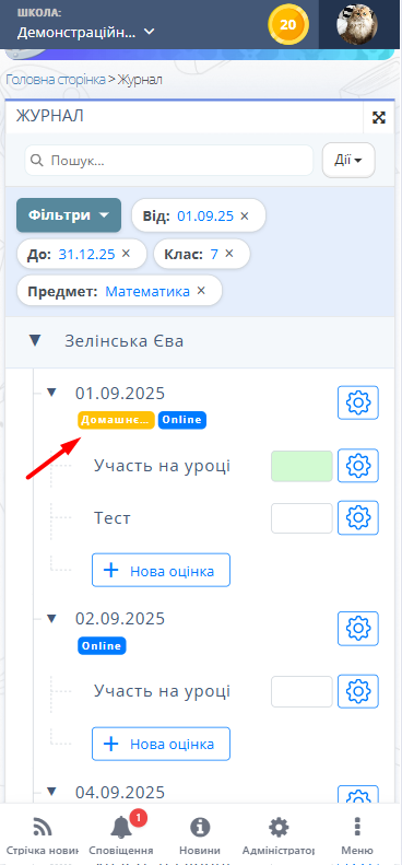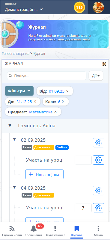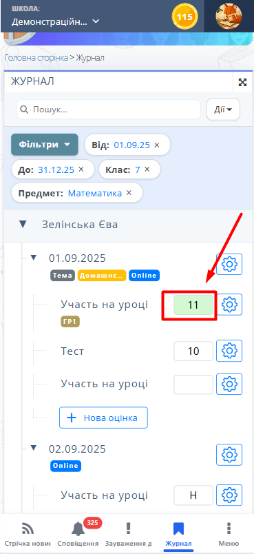 Виставлення оцінювання на уроці у мобільному журналі¶