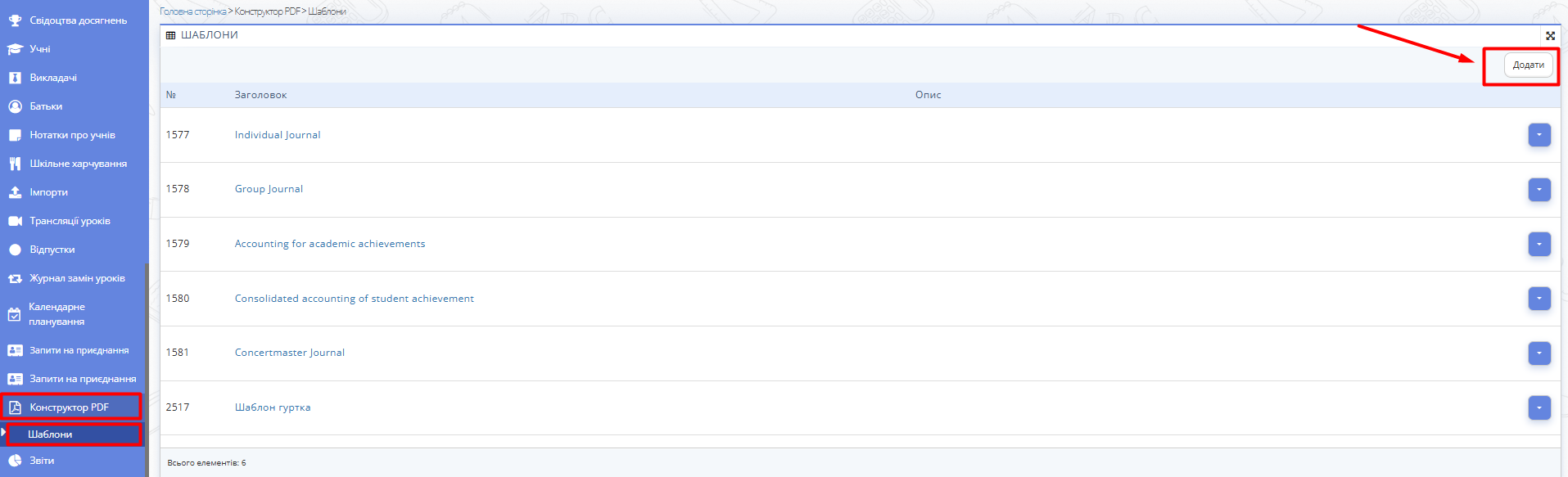 ⚠️ Конструктор PDF призначений для створення шаблонів журналів, які використовуються у відповідних звітах.