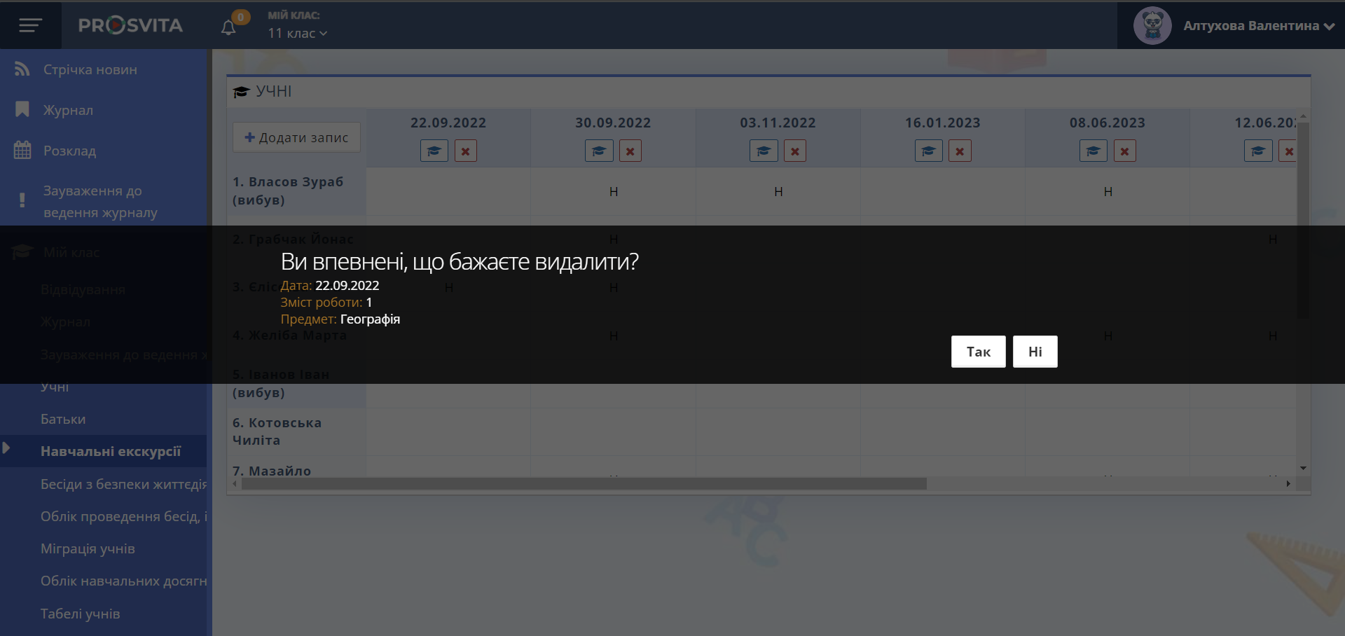 Рис. 4. Видалення екскурсії
