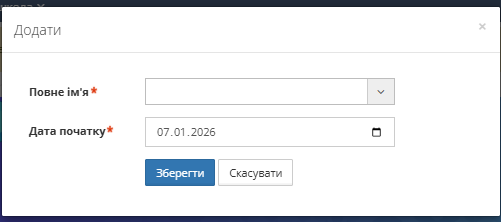 - У формі, що відкрилася, оберіть учня зі списку та вкажіть дату початку навчання у підгрупі.