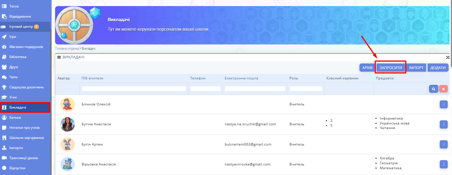 Управління профілями викладачів у робочому просторі школи¶