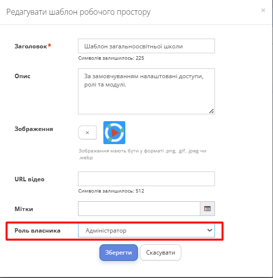 - Потім перейдіть до списку шаблонів, натисніть опцію "Редагувати" праворуч від чернетки нового шаблону та у формі, що з'явиться, внизу оберіть цю роль власника.