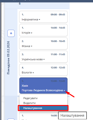 Рис. 1. Сторінка "Розклад уроків" - У вікні налаштувань змініть викладача.