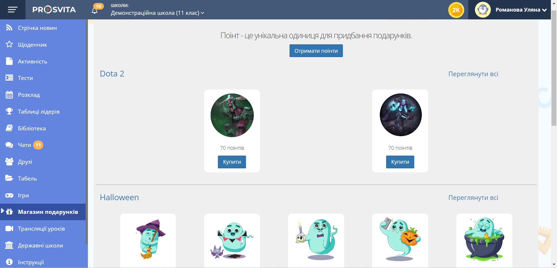 ⚠️ Для покупки подарунків потрібні накопичені поінти.