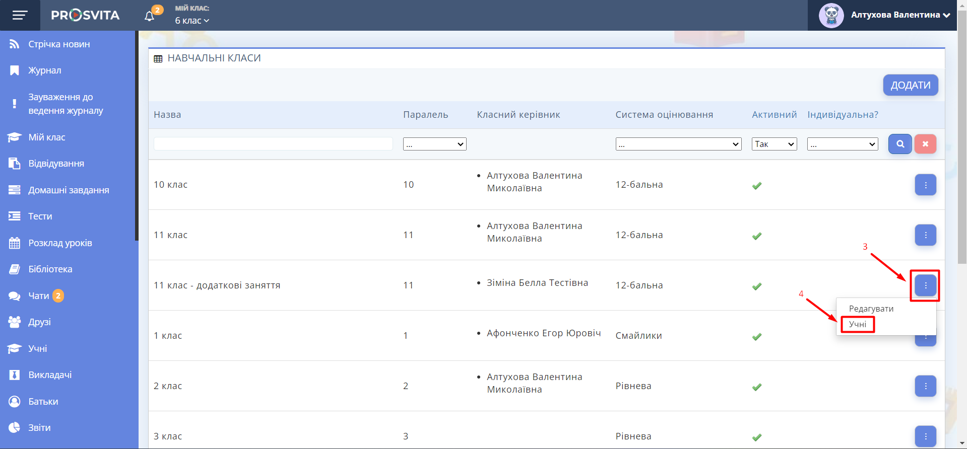 поруч з назвою класу та оберіть Учні.