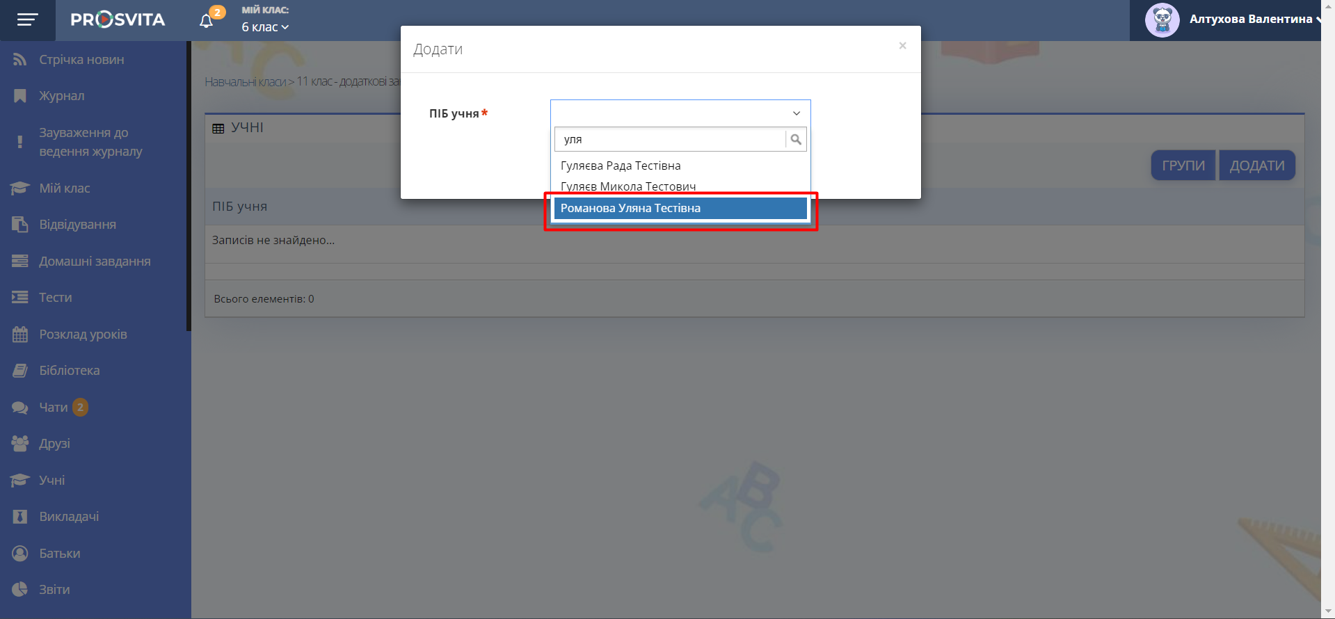 Почніть вводити ПІБ учня та оберіть потрібну дитину зі списку.