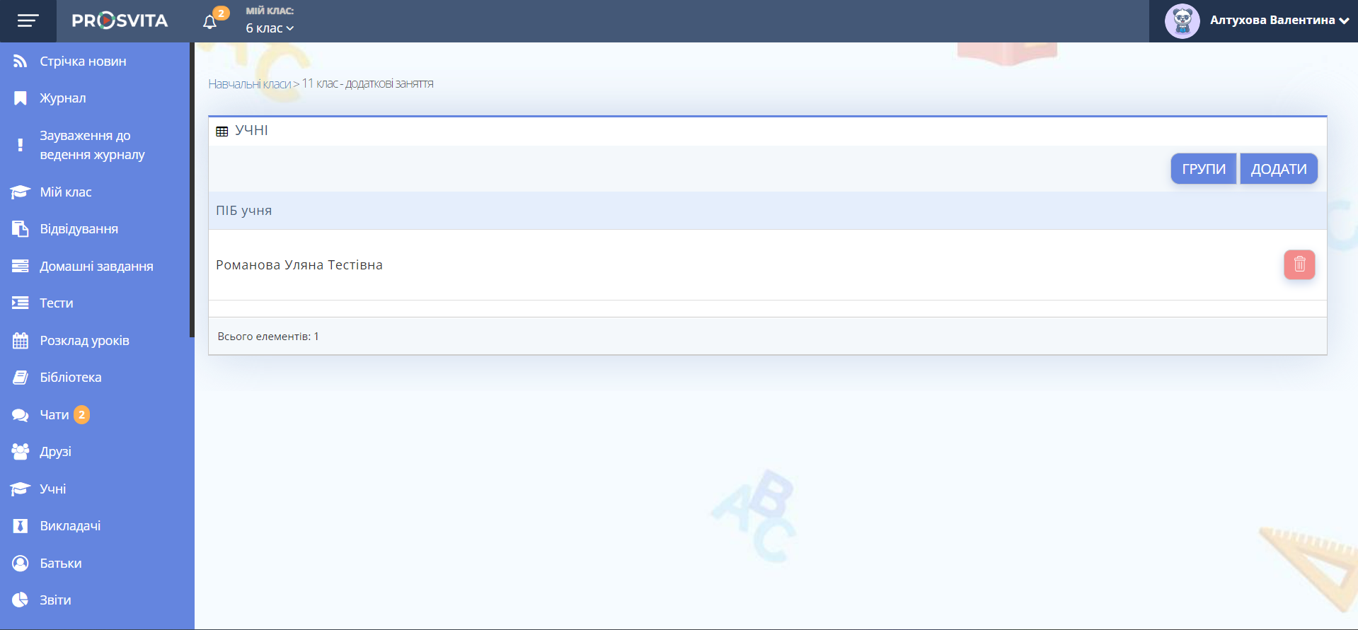 Учня додано до ще одного класу. В його профілі з’явилася можливість перемикатися між класами.