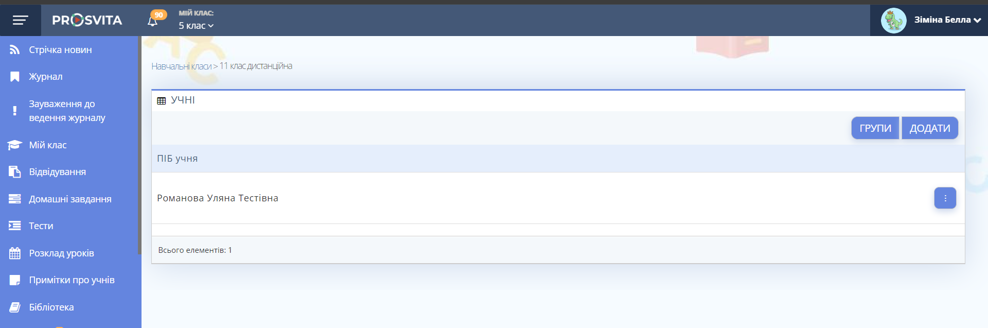 - Оберіть клас, з якого потрібно відрахувати учня.
